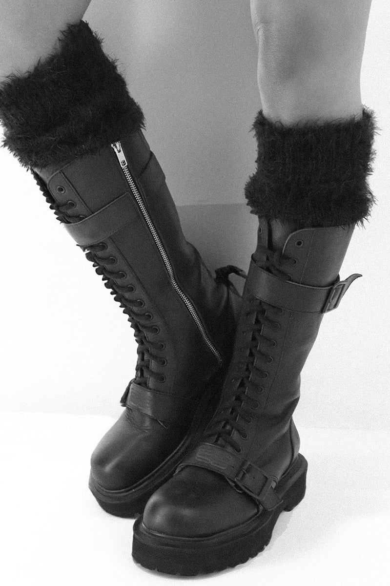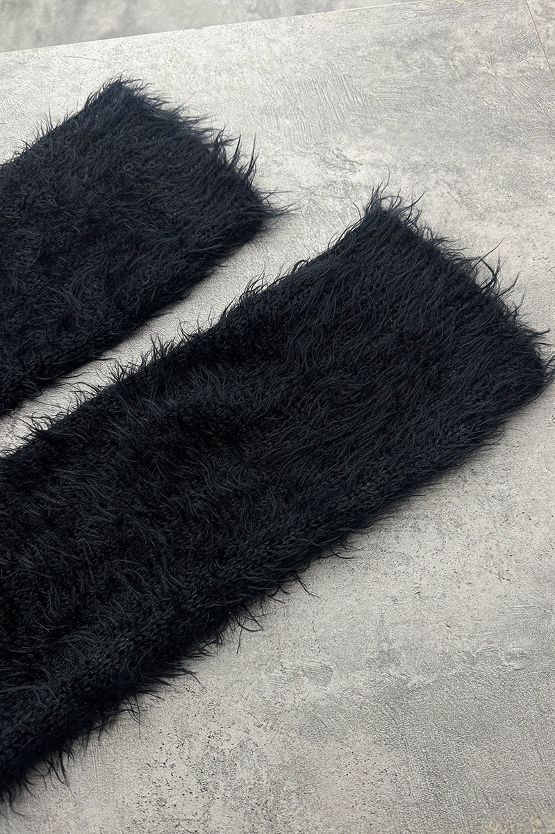 Polainas negras tejidas de 44 cm de largo.