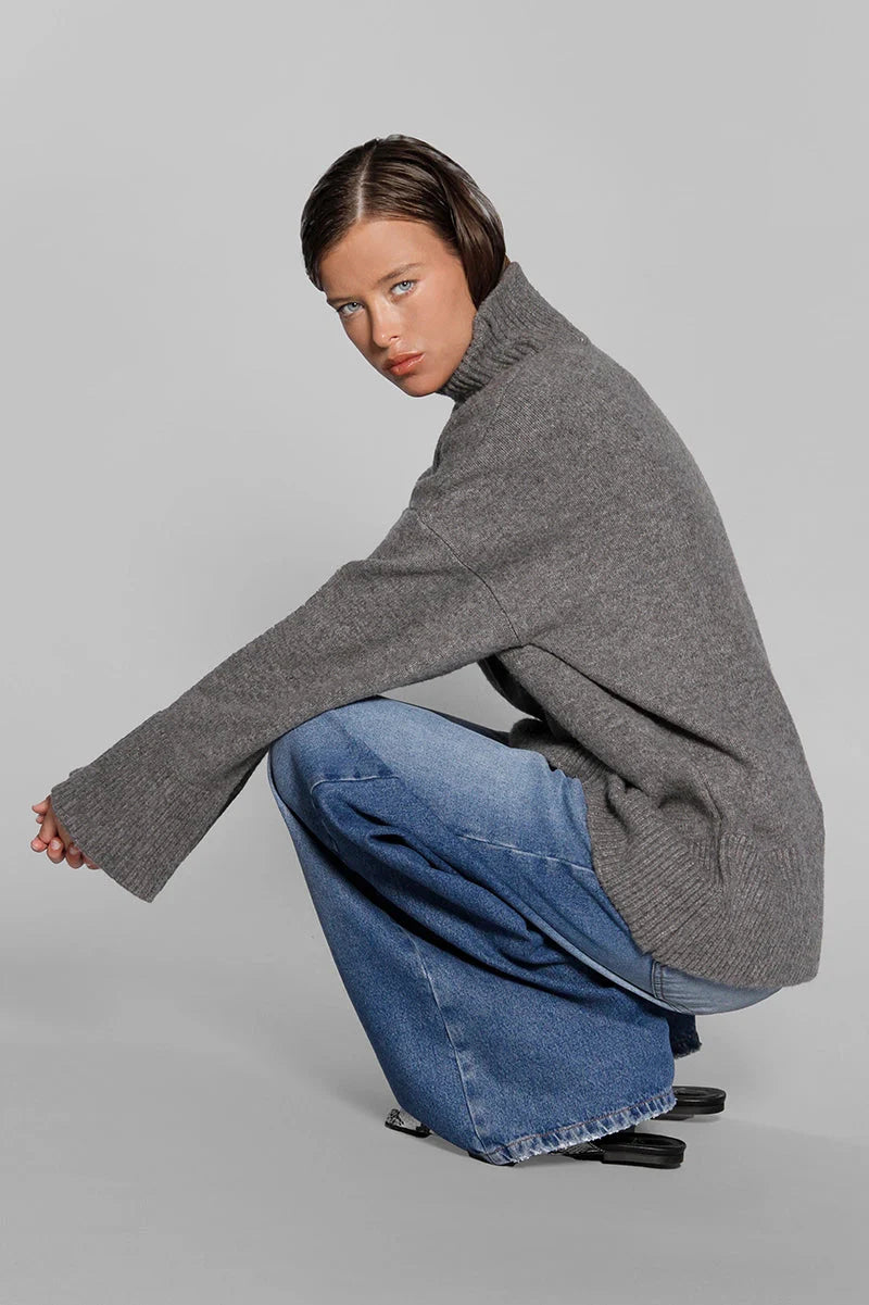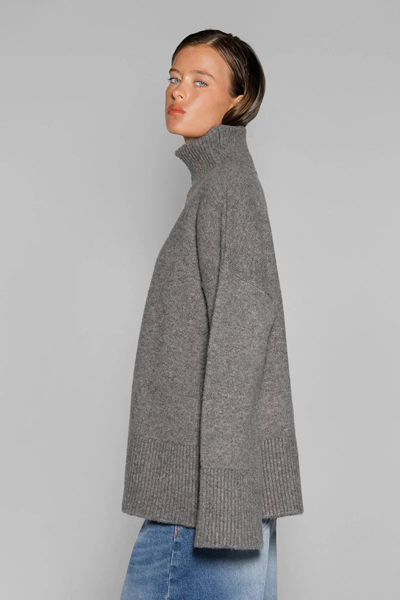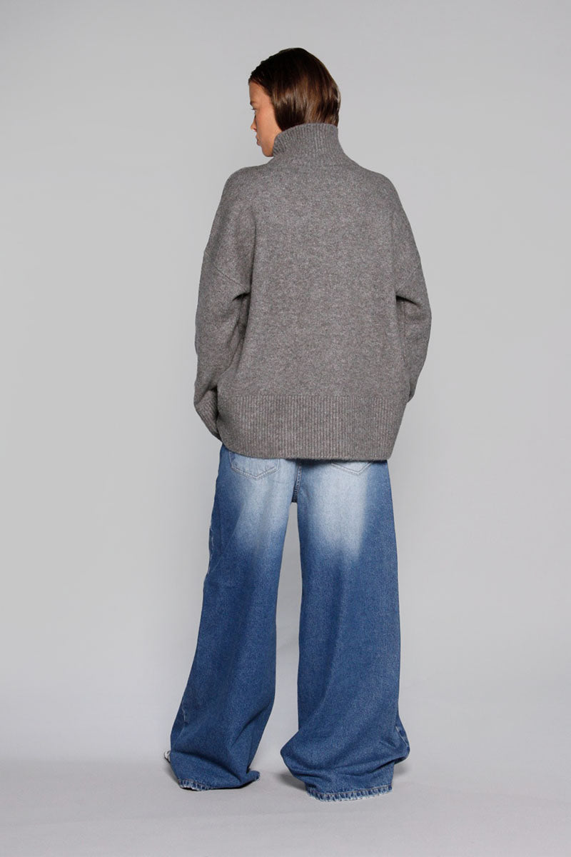 Polerón Ray gris de puños anchos, confeccionado en un tejido grueso y pesado para brindar mayor abrigo. Su textura es suave al tacto, aportando comodidad en cada uso. Su largo modular es por debajo de la cadera.