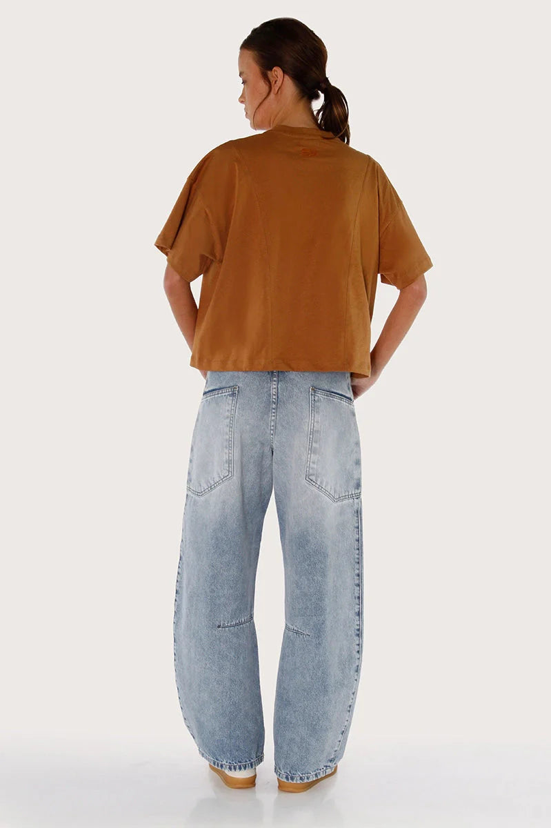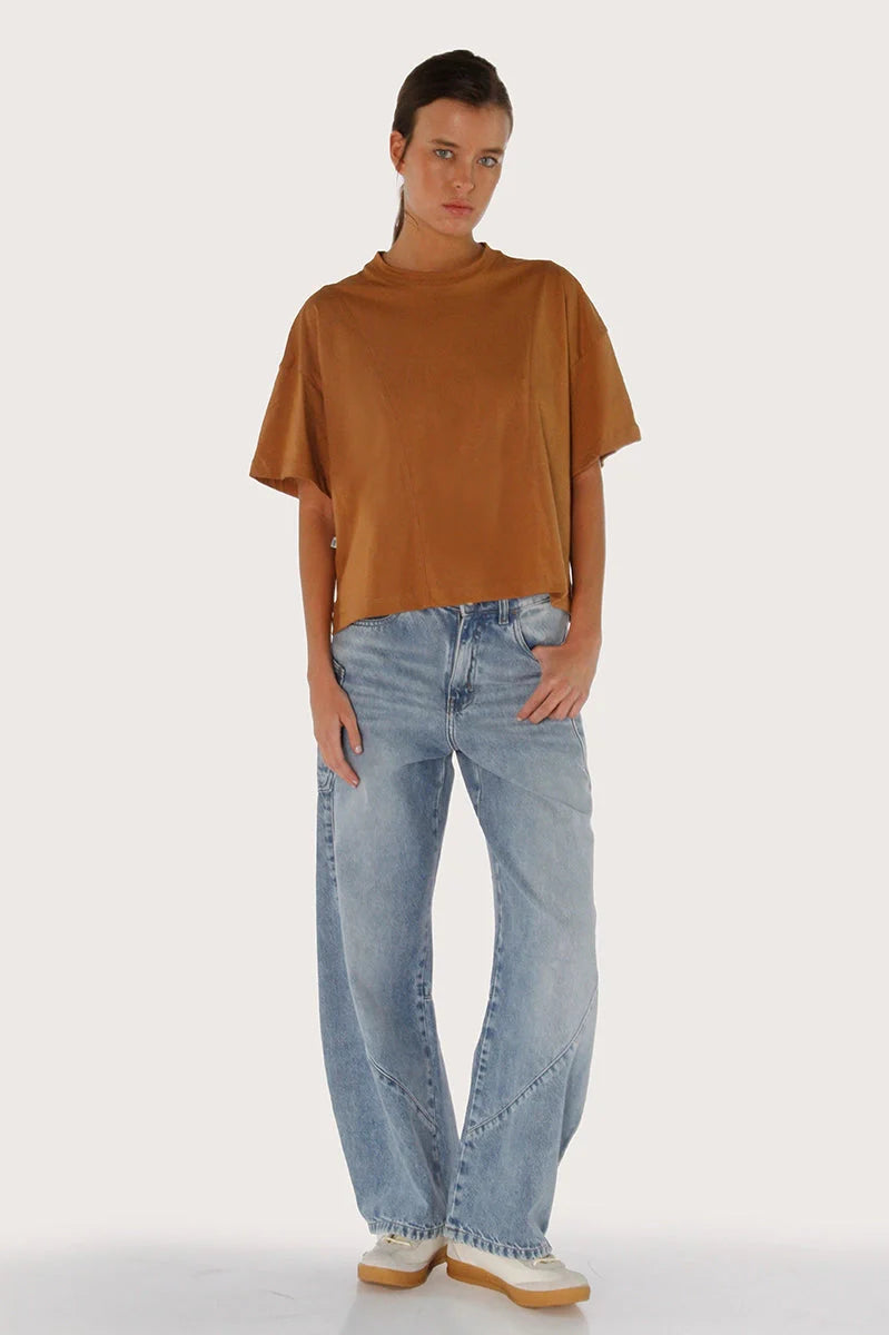 Remera Carp marrón confeccionada en algodón liviano y suave con buena caída. Su diseño incluye recortes curvos en delantero y espalda que le dan un estilo diferente. Presenta grifa tejida en el lateral y logo bordado de marca en el frente. El largo modular llega hasta la cadera. Un básico versátil que no puede faltar en tu guardarropa.