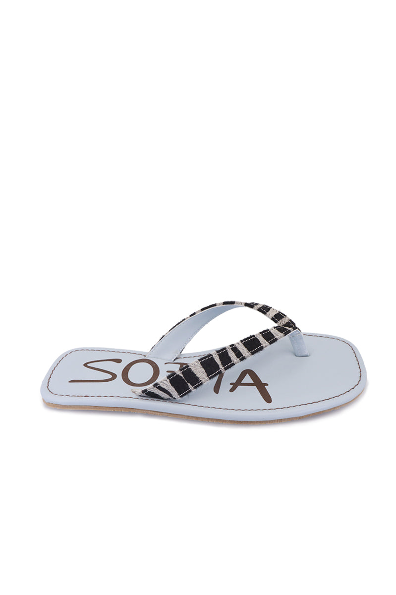 Ojota de pelo cebra, con forrerias animal Friendly. Estampa LUMIARA exclusivo de nuestra capsula CELEB. Costuras combinadas en capellada y plantilla a contra tono. Suelin de goma.