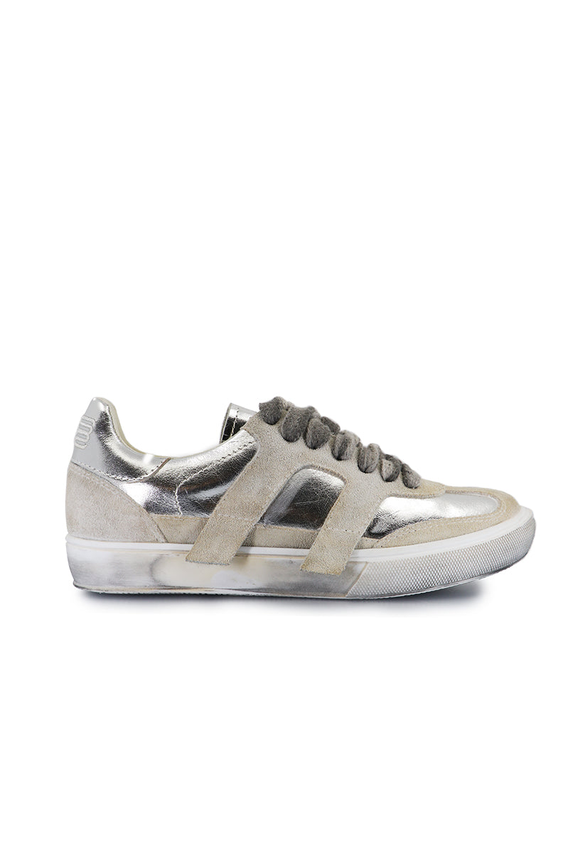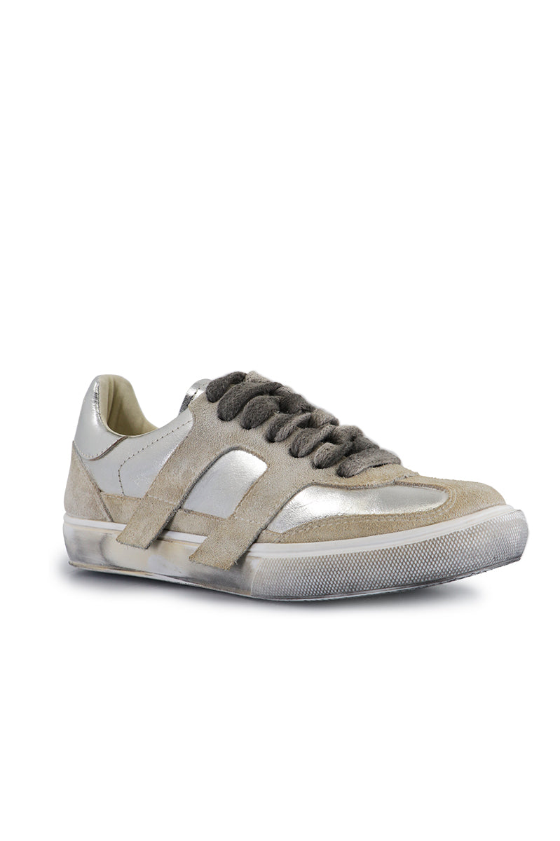 Zapatilla en combinación con gamuzón y textil. Logo de marca en talón y bordado en lengua. Base de goma inyectada blanca patinada.