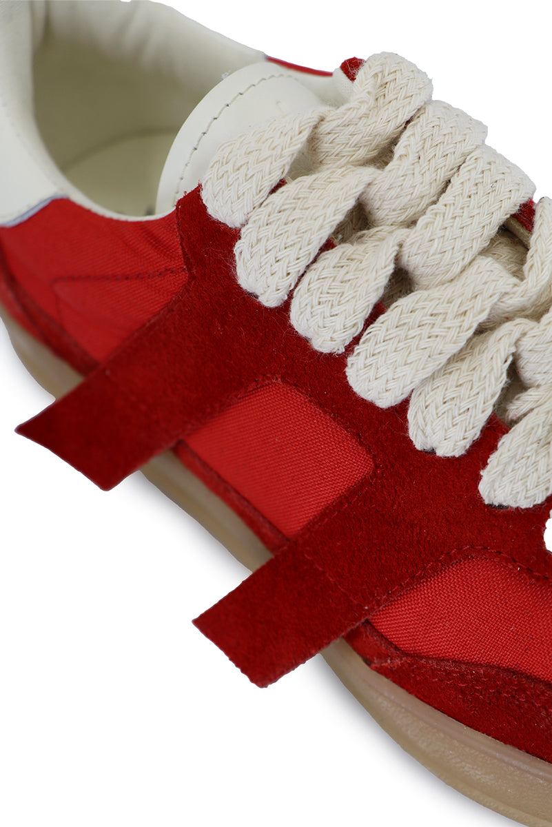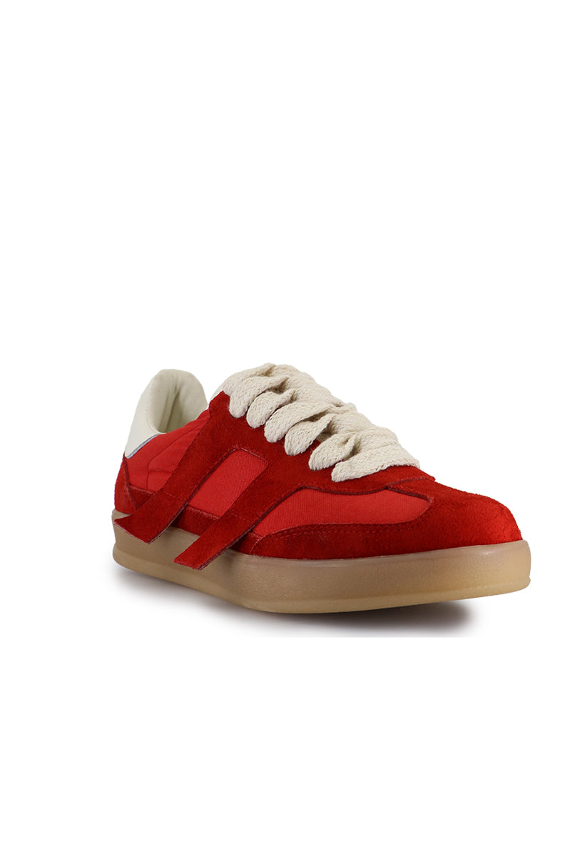 Zapatilla en combinación con gamuzón y textil. Logo de marca en talón y bordado en lengua. Base de goma inyectada blanca patinada.
