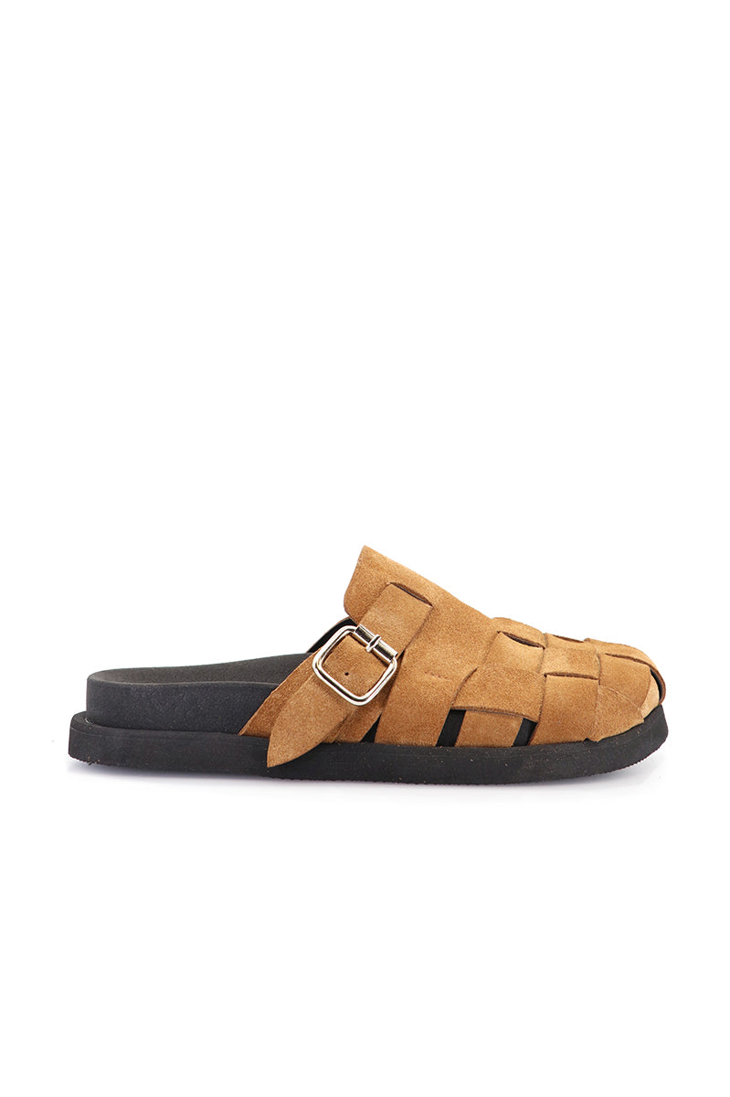 Zueco Nash suela confeccionado en gamuzón trenzado que aporta textura al diseño. Presenta detalle de hebilla en el empeine. Su plantilla anatómica asegura confort en cada uso, acompañada de suelín de cuero flex. Un modelo que combina comodidad con estilo.